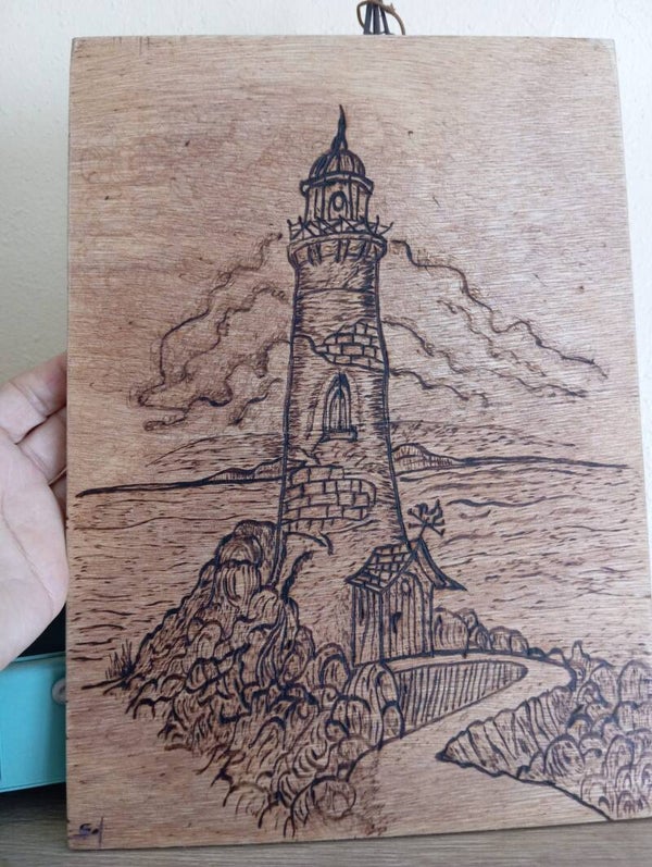 Cuadro pirografiado en madera de contrachapado de 1 cm de espesor.